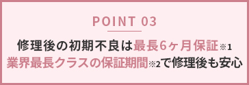 ※2 パーツ交換を伴わない修理、低価格パネルなど一部パーツでの修理時には、保証期間が異なる場合があります。